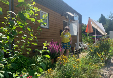 Mitten in einem blühenden Naturgarten voller Wildblumen, Kräuter und seltener Insekten hat sich Gera...